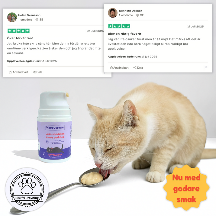 HappyCream™ är utvecklad i Sverige av kattexperter och tillverkad med största noggrannhet för att möta de högsta kraven på säkerhet och kvalitet. Den innehåller endast naturliga, näringsrika ingredienser som valts ut för att stärka din katts hälsa på ett skonsamt sätt.